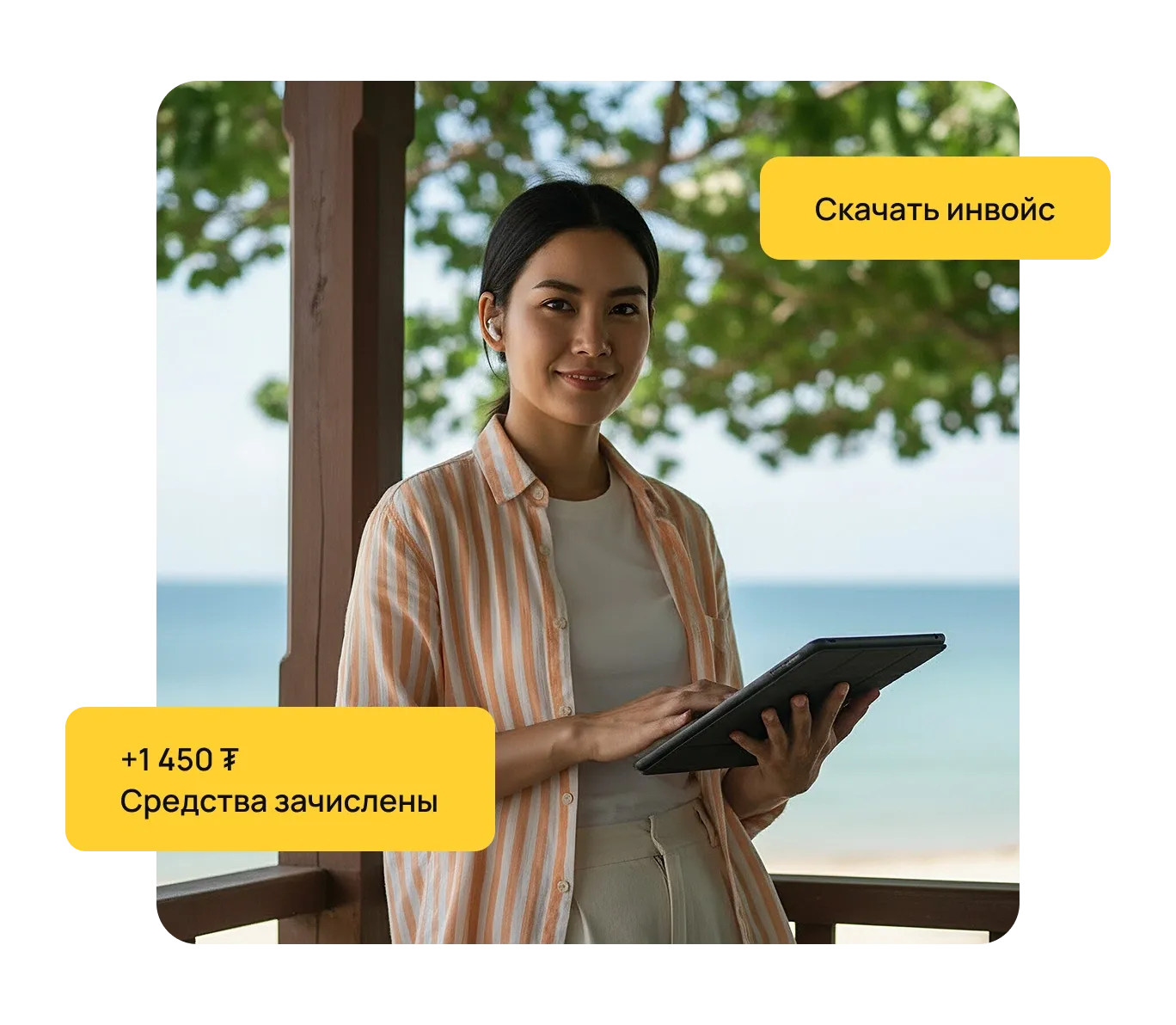 Работайте с международными клиентами и соблюдайте нормы комплаенса. Выводите средства на карту, расчётный счёт ИП или криптокошелёк — и получайте инвойсы, к которым не придерутся ни бухгалтер, ни налоговая. Проходите валютный контроль в банке без лишних бумаг и стресса.