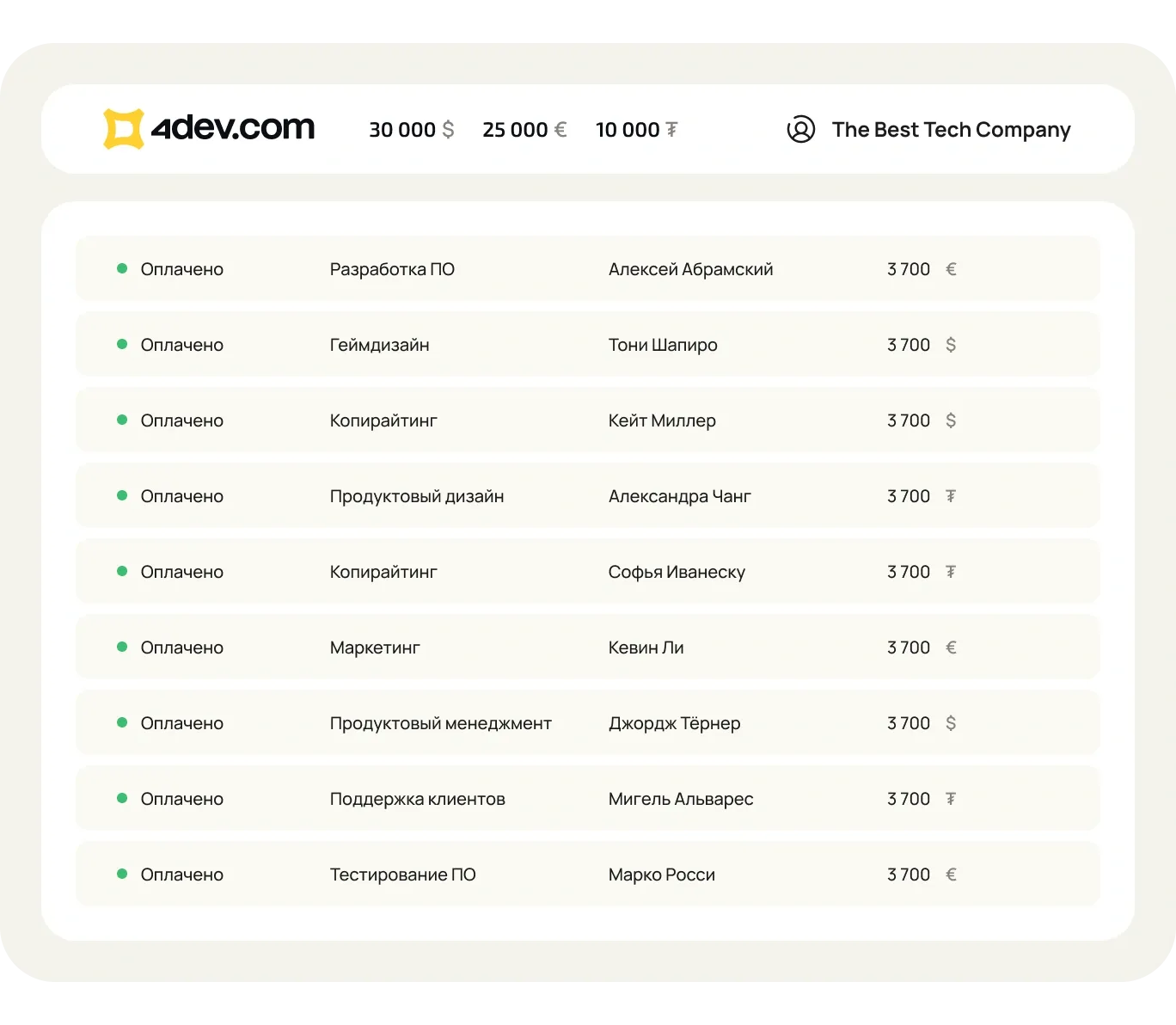 Платите всей команде в один клик