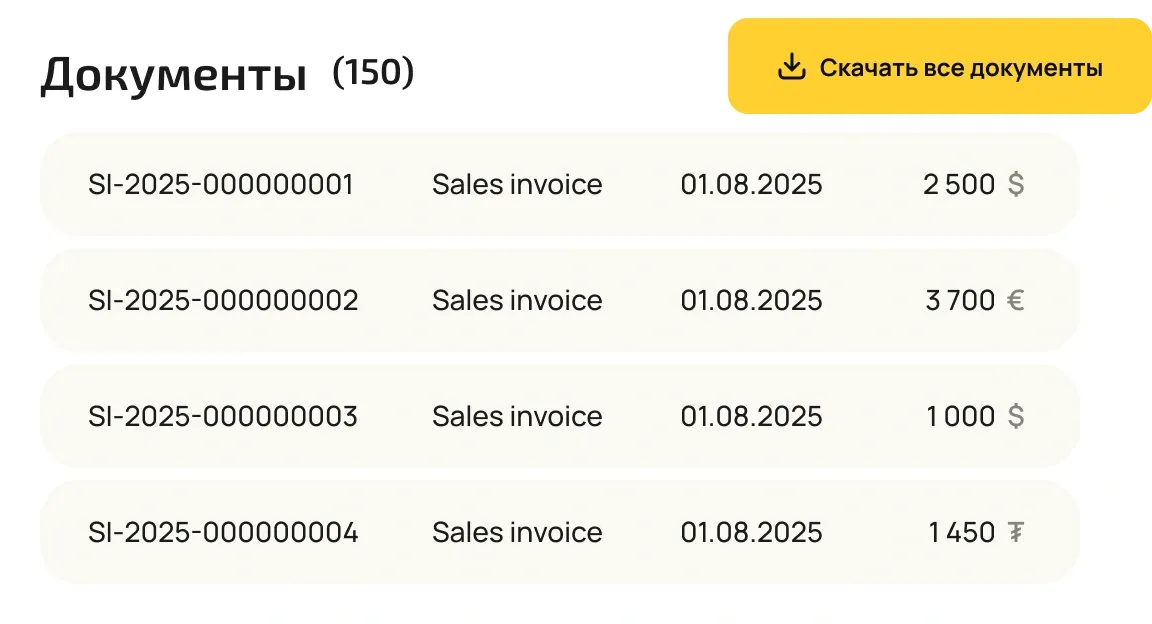 Мгновенно получайте детальные инвойсы по каждой выплате. Они подходят для бухгалтерии, аудитов и отчёта инвесторам, соответствуют международным стандартам финансовой отчётности (IFRS). Если вы привлекаете инвестиции, документы подтвердят вложения в команду и станут обоснованием бюджета на дальнейшую разработку.
